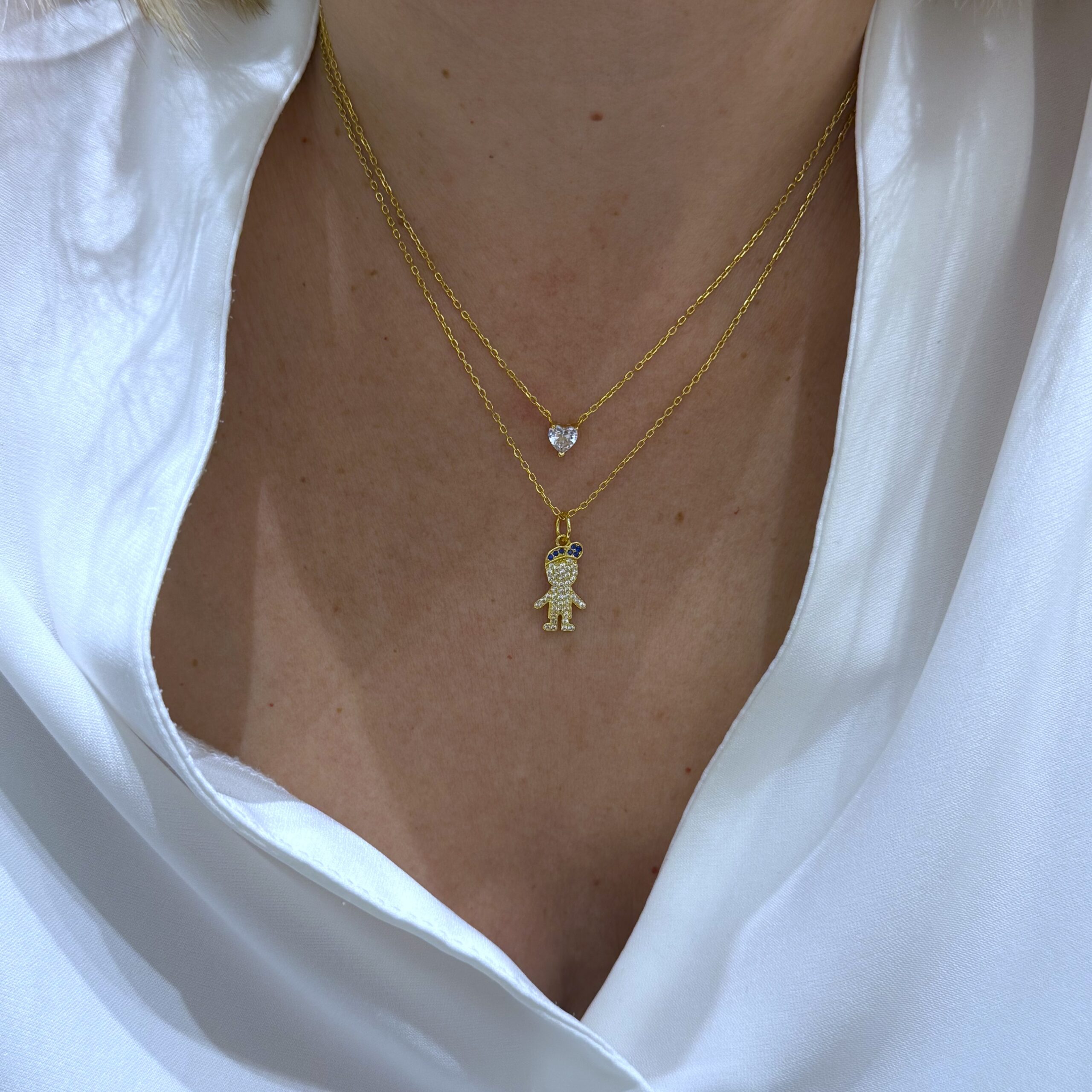 Gold plated (18ct) 925 silver with white and blue zircons necklace