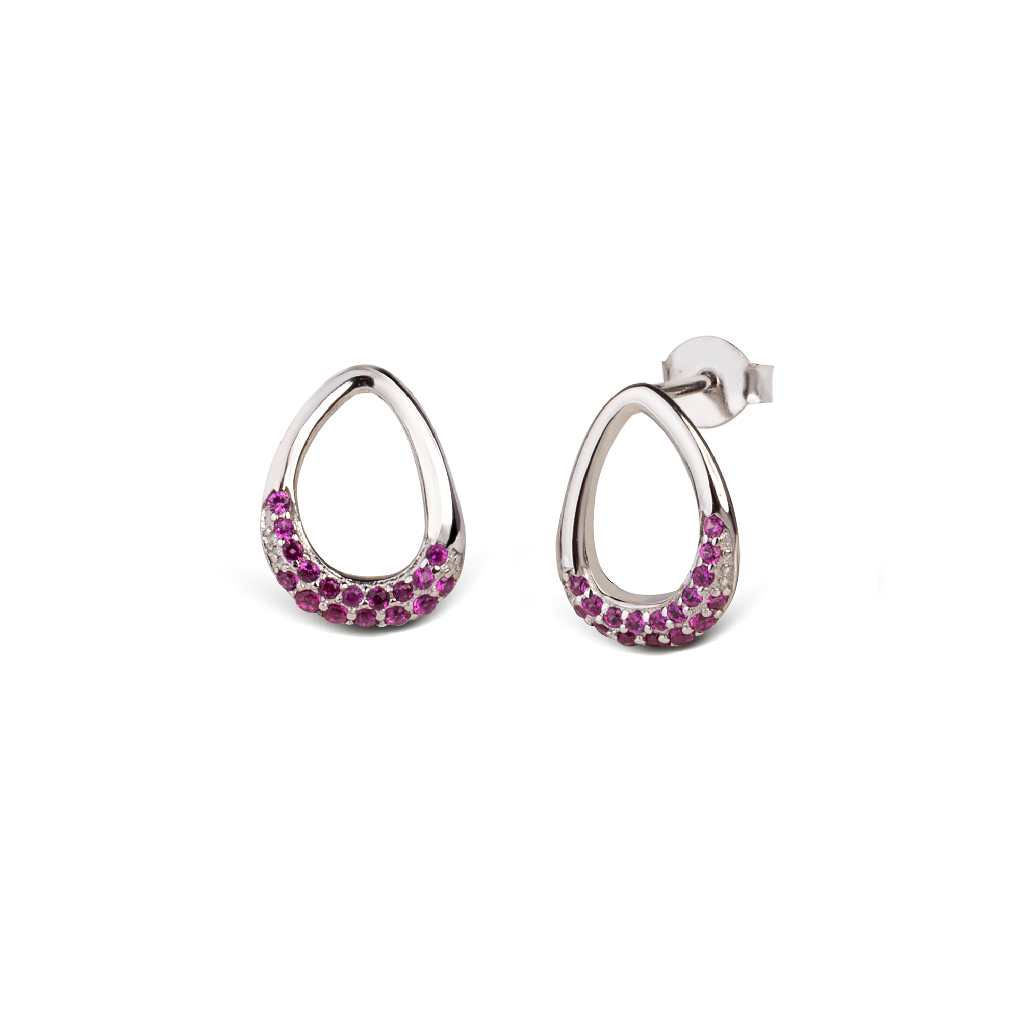 Σκουλαρίκια από ασήμι 925 με λευκές και ρουμπινί πέτρες ζιργκόν