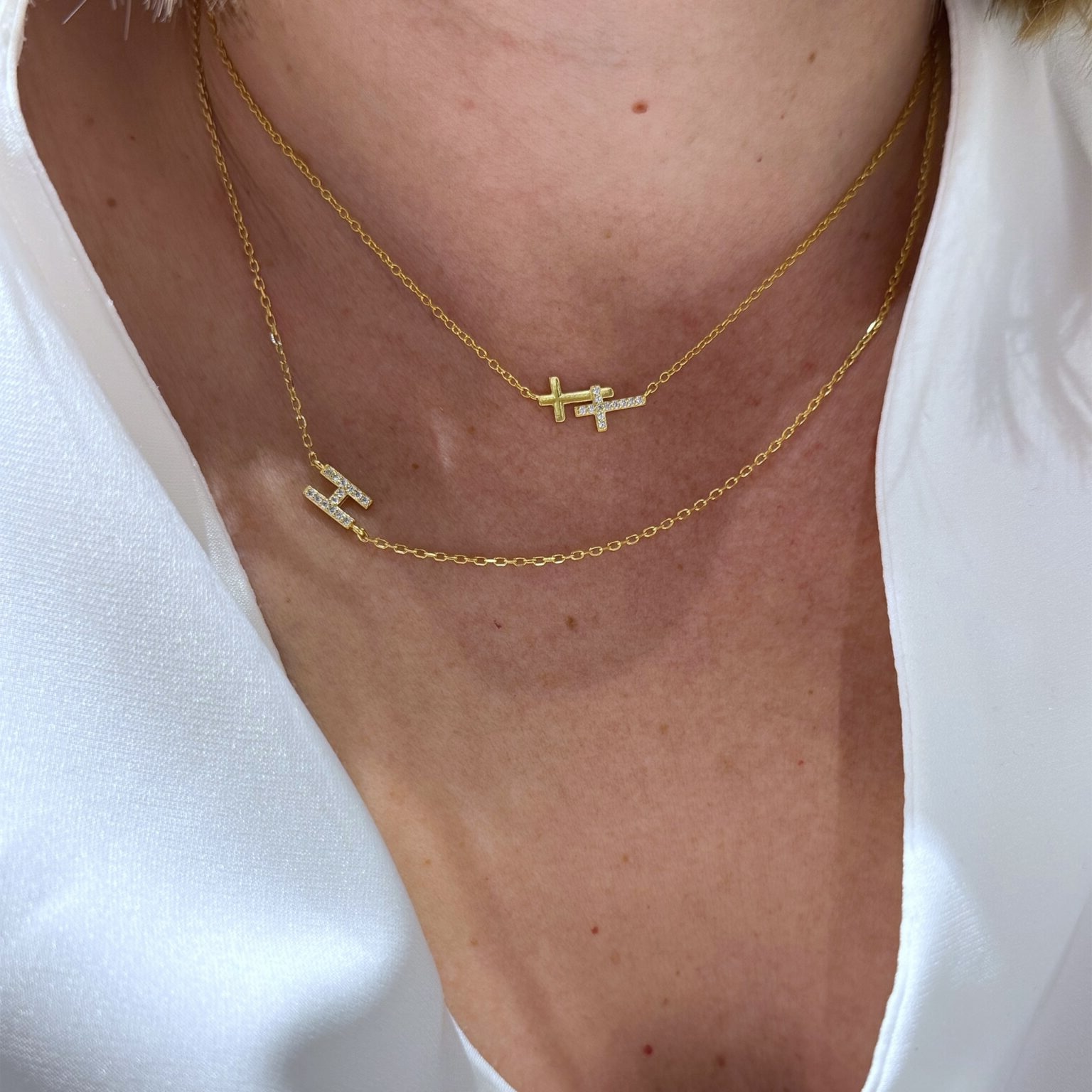Κολιέ από επιχρυσωμένο (18 καράτια) ασήμι 925 με λευκές πέτρες ζιργκόν