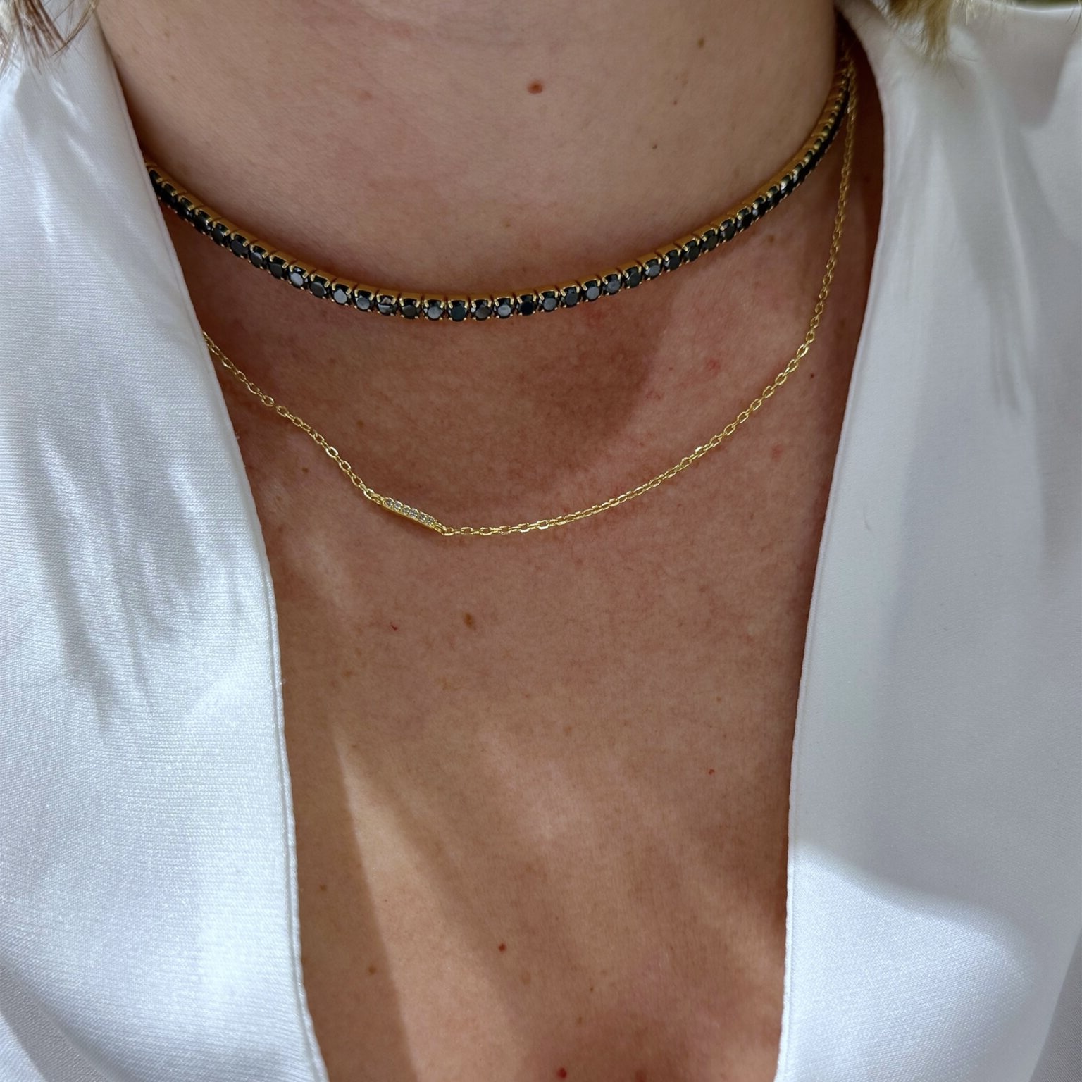 Κολιέ από επιχρυσωμένο (18 καράτια) ασήμι 925 με λευκές πέτρες ζιργκόν