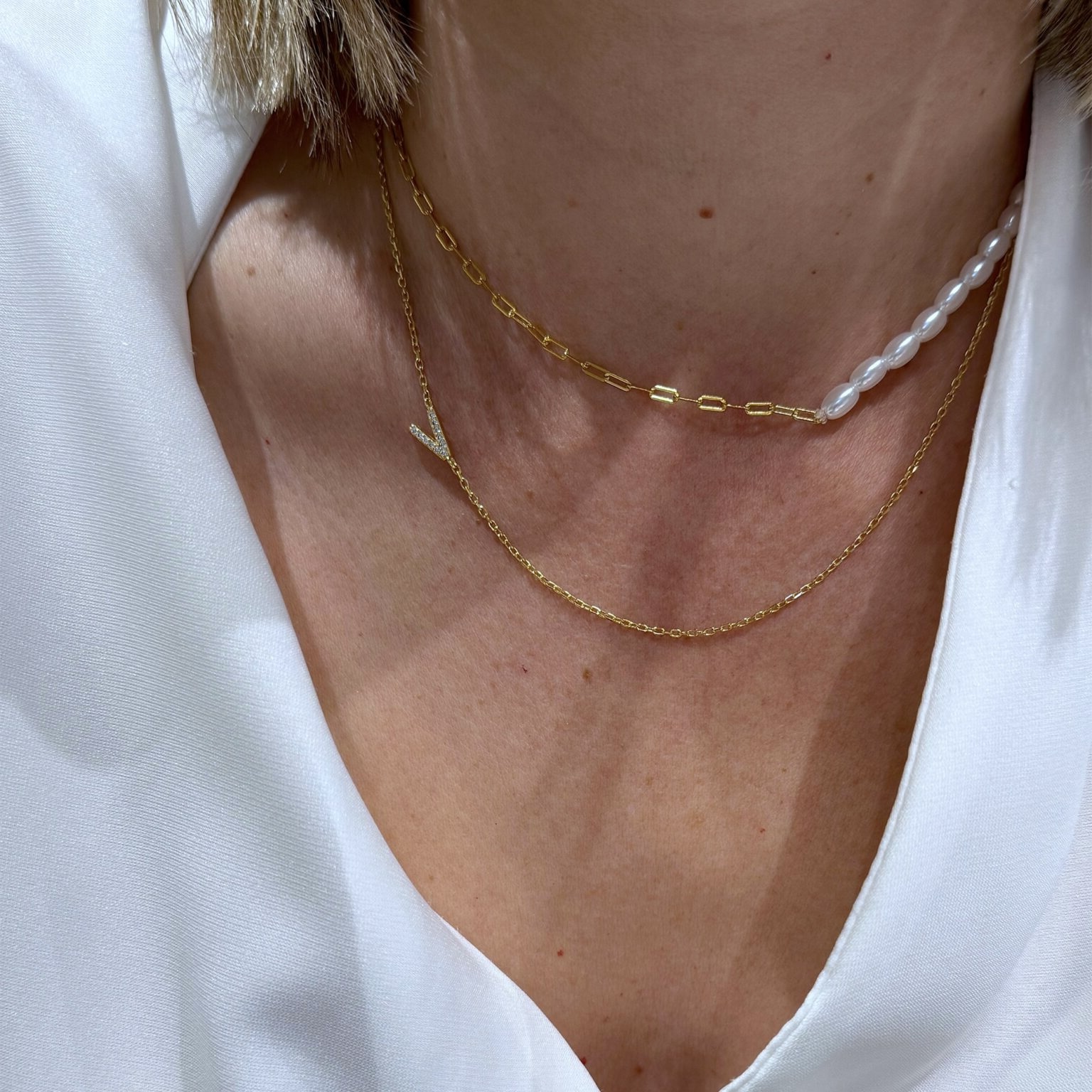 Κολιέ από επιχρυσωμένο (18 καράτια) ασήμι 925 με λευκές πέτρες ζιργκόν