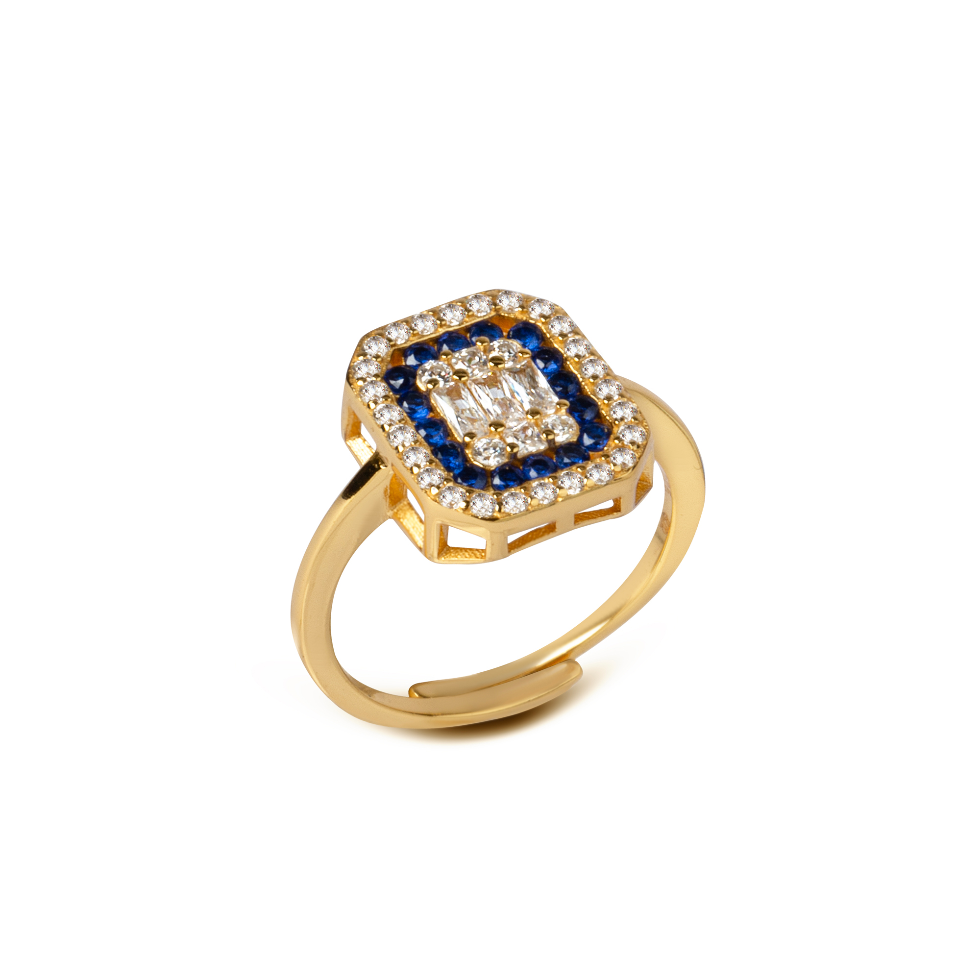 Δαχτυλίδι από επιχρυσωμένο (18 καράτια) ασήμι 925 με λευκές και μπλε πέτρες ζιργκόν