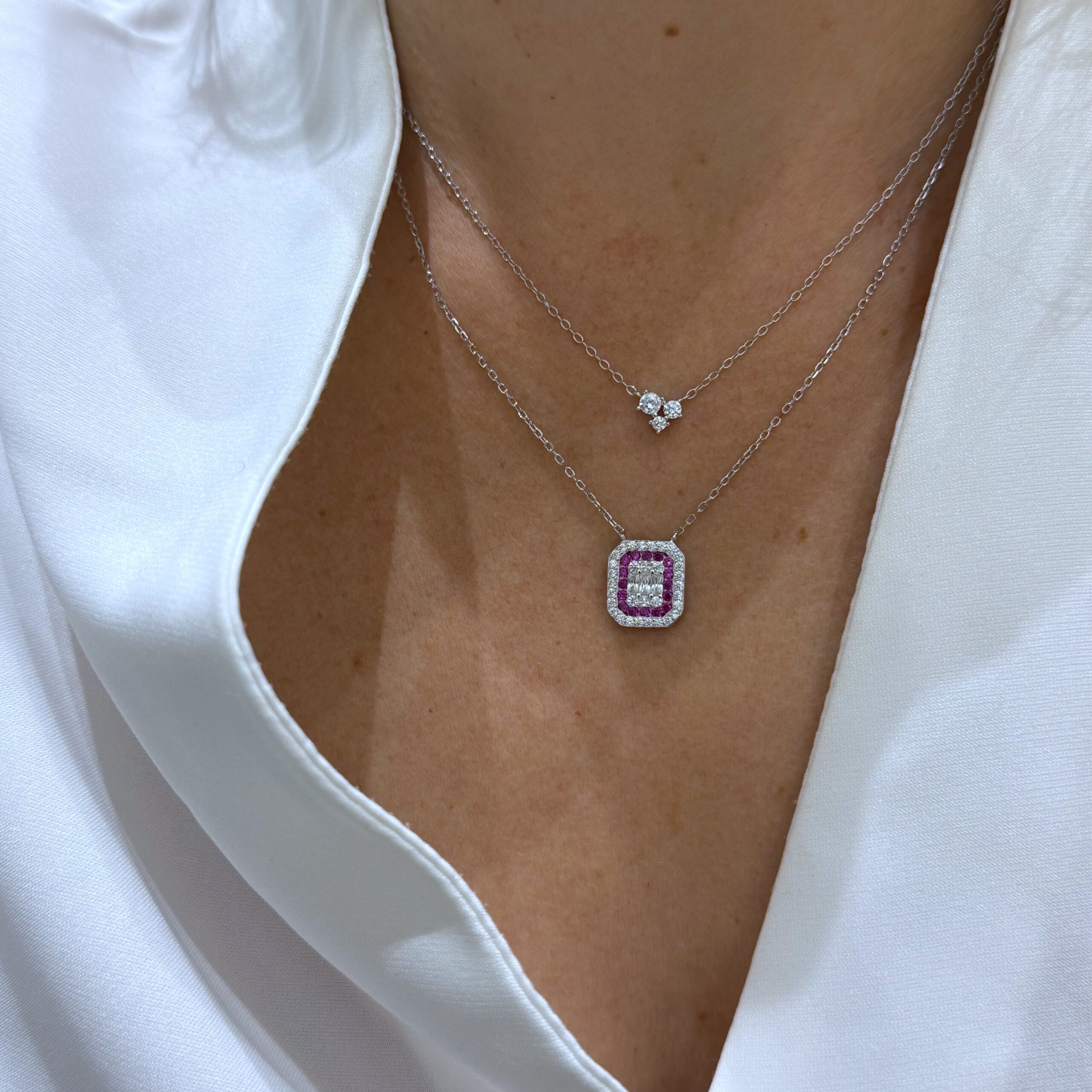 Κολιέ από ασήμι 925 με λευκές και ρουμπινί πέτρες ζιργκόν
